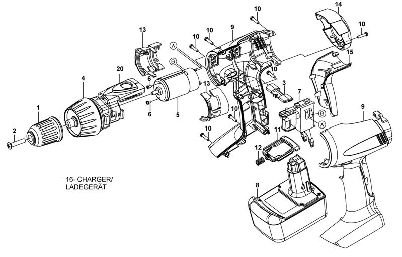 132ABS Аккумуляторная дрель-шуруповерт - запчасти и деталировка