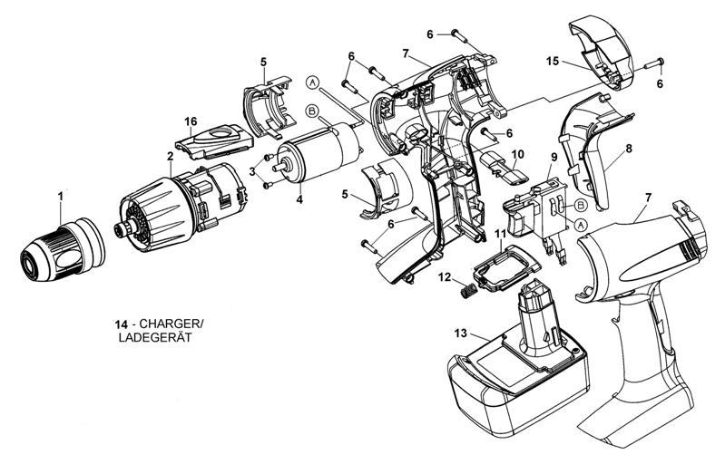 144LIOS Аккумуляторная дрель-шуруповерт - запчасти и деталировка