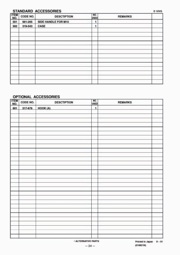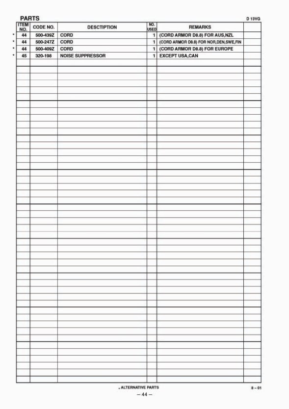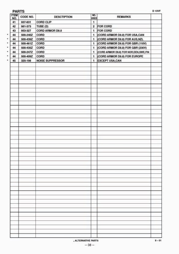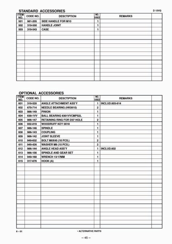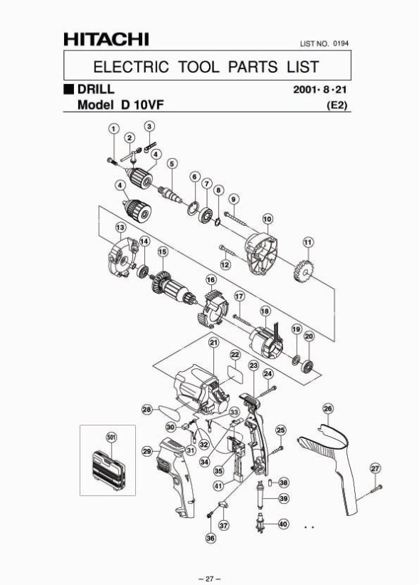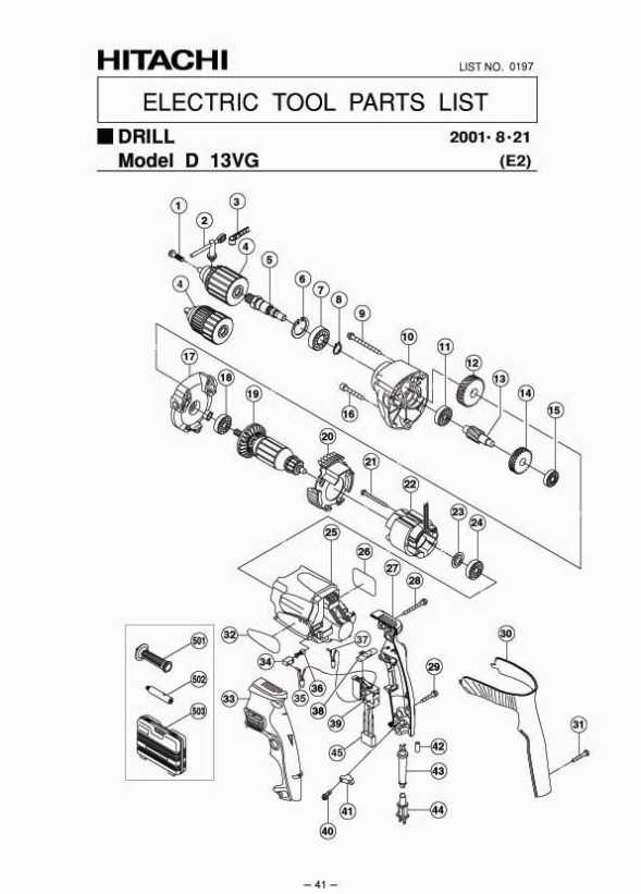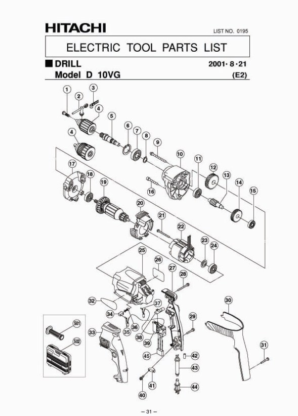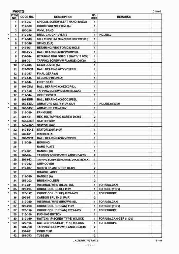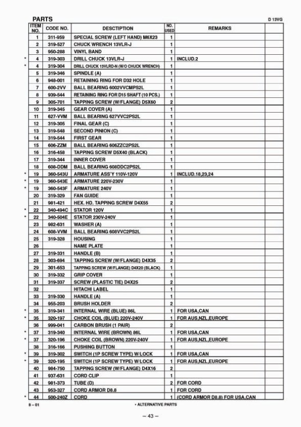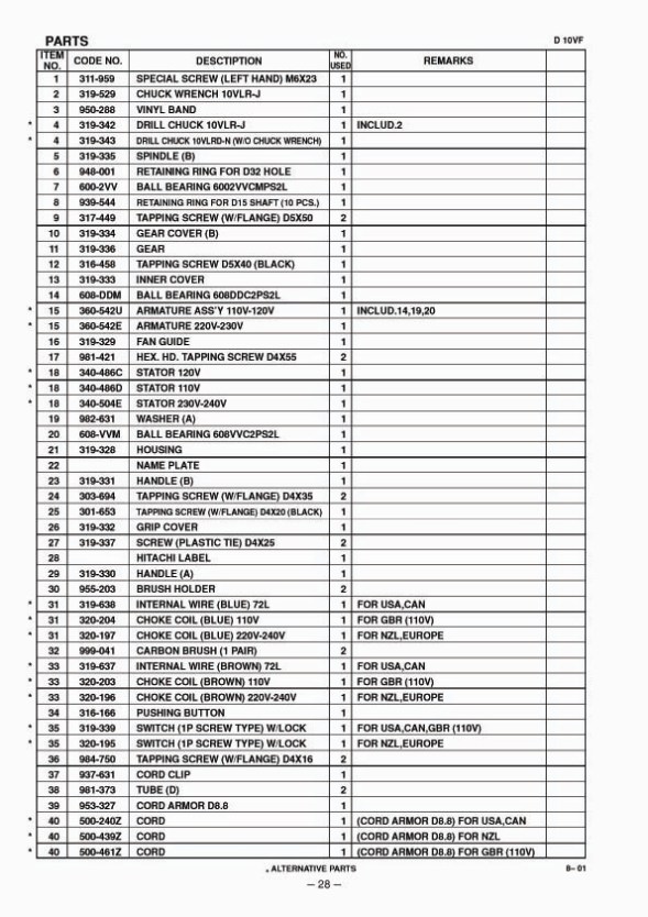 D10VG, D10VF, D13VG, D13VF Дрель - запчасти и деталировка