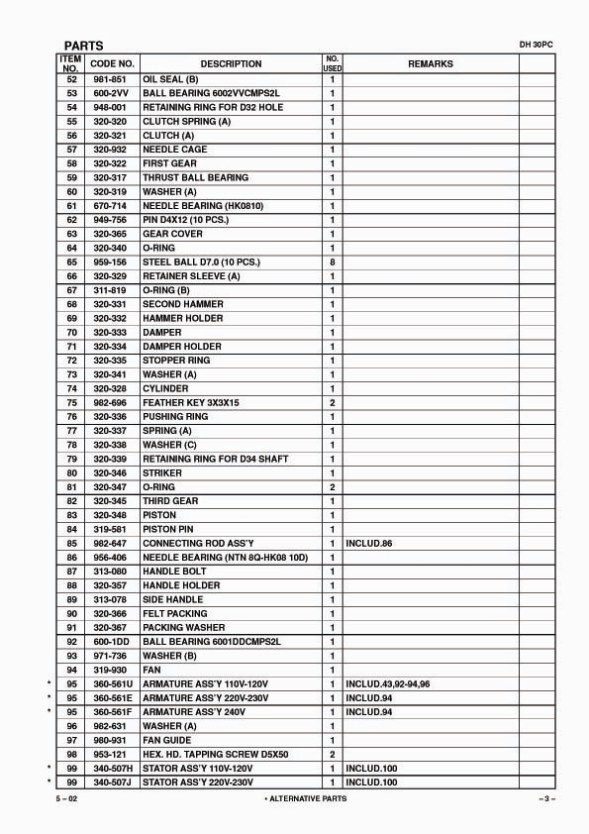 DH30PC Перфоратор - запчасти и деталировка