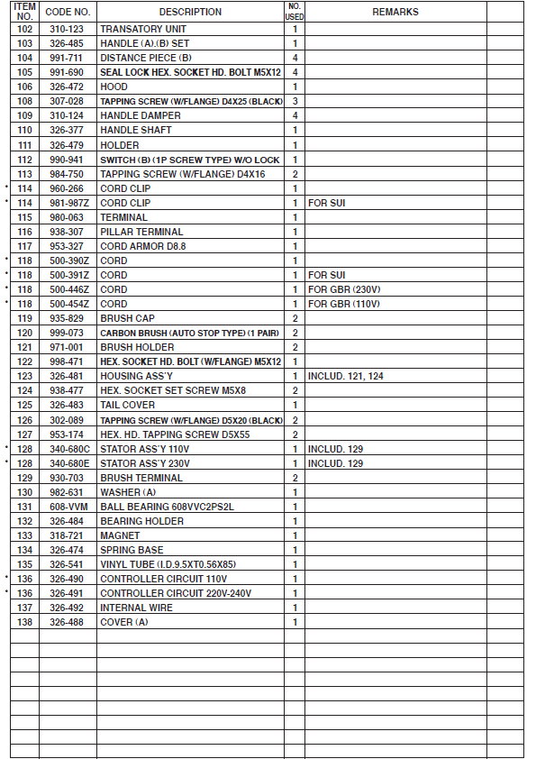 Запчасти для электроинструмента