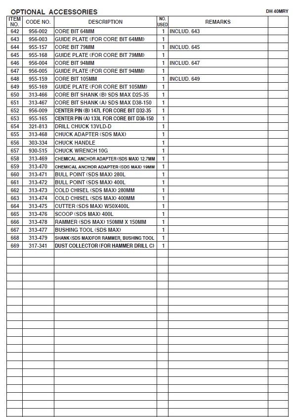 DH40MRY Перфоратор - запчасти и деталировка