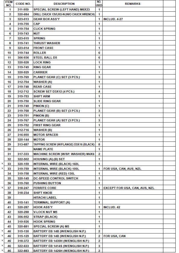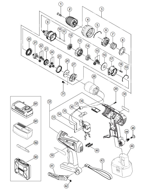 DS14DVB2 Аккумуляторная дрель-шуруповёрт - запчасти и деталировка