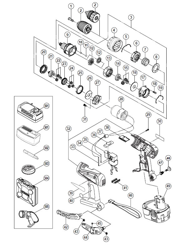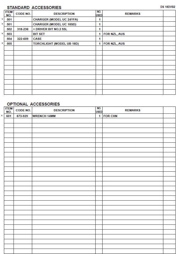 DS18DVB2 Аккумуляторная дрель-шуруповёрт - запчасти и деталировка