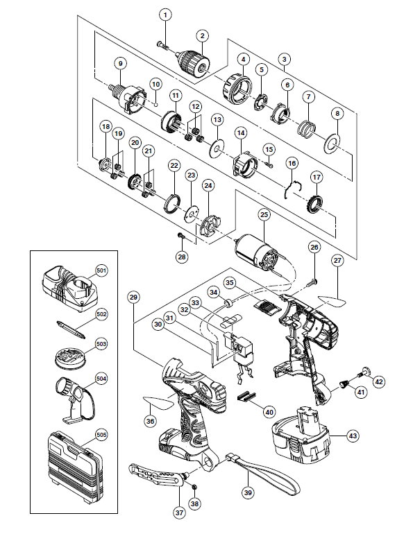 DS18DVF3 Аккумуляторная дрель-шуруповёрт - запчасти и деталировка