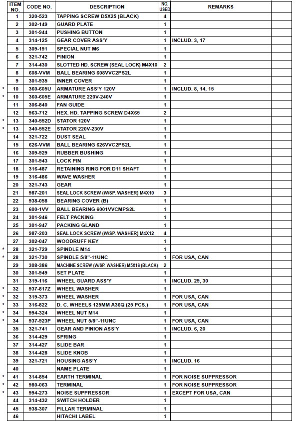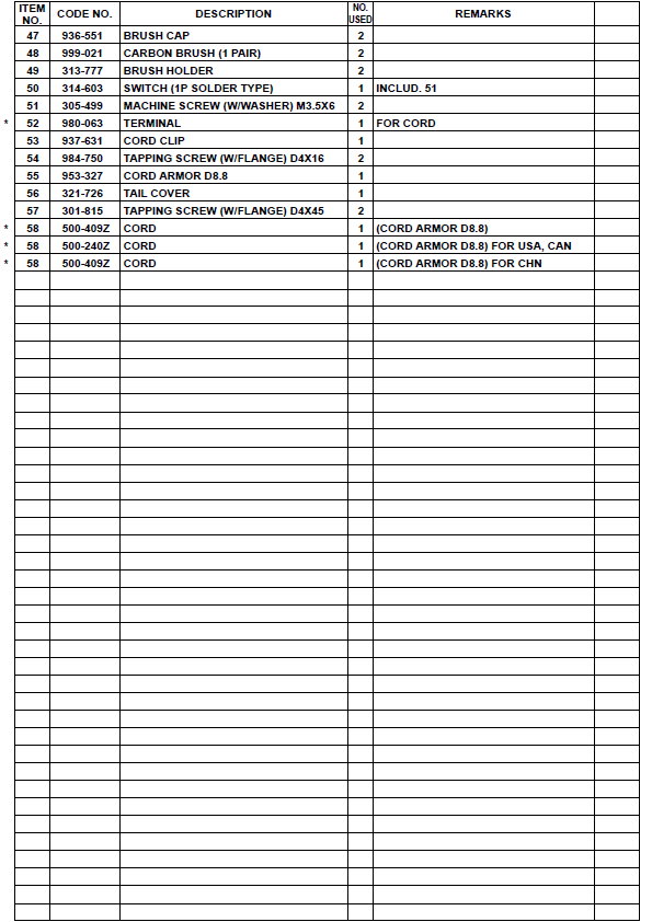 Запчасти для электроинструмента