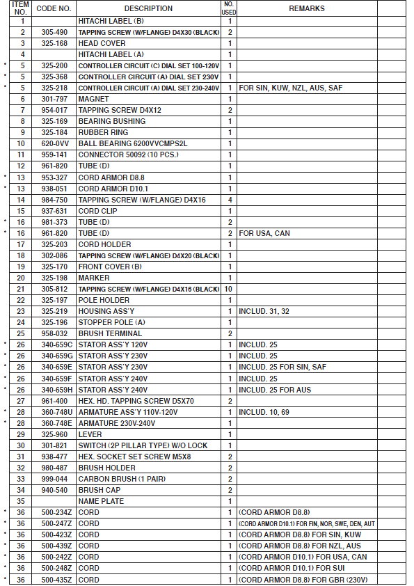 Запчасти Hitachi
